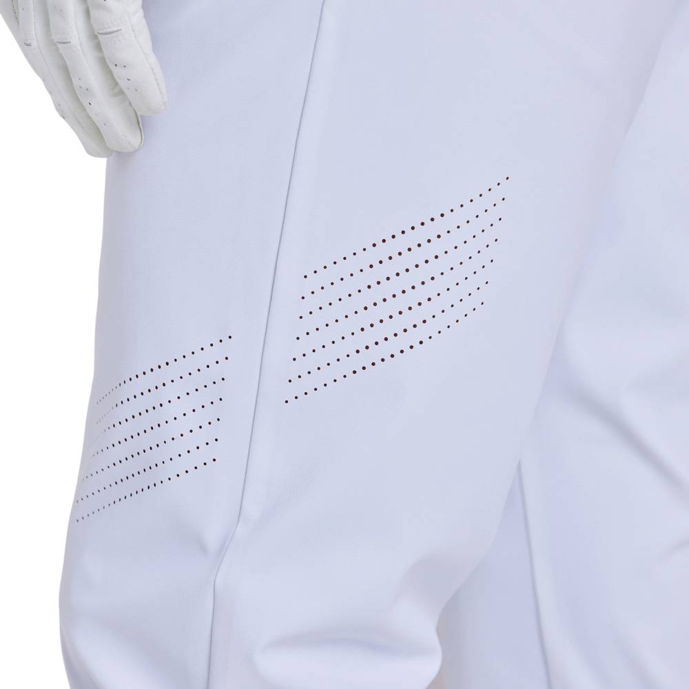 伸縮性に優れた機能性生地が、スイング時や歩行時の柔軟で自由な動きを実現します。